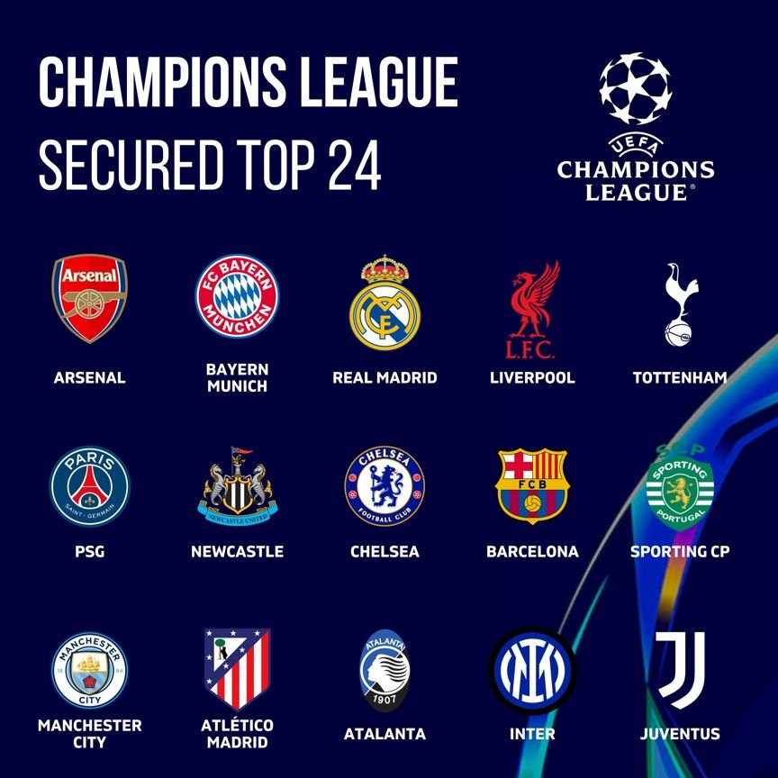 Με μια ακόμη αγωνιστική να απομένει στη League phase του Champions League, είναι πλέον γνωστές οι 15 από τις 24 ομάδες που θα συνεχίσουν. Από αυτές, οι δύο έχουν κλειδώσει και την οκτάδα (Άρσεναλ και Μπάγερν)