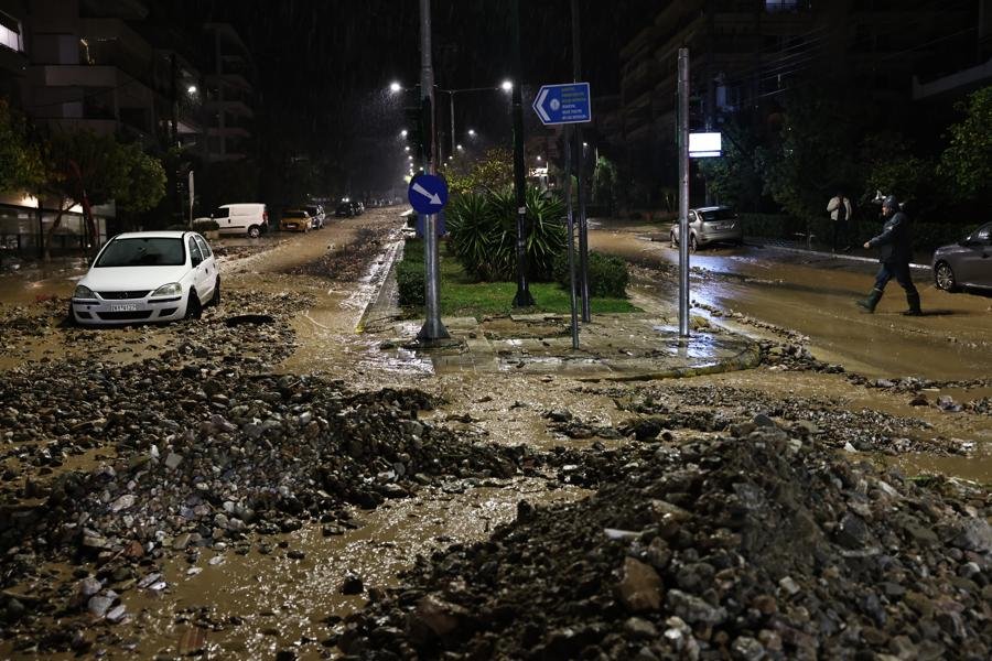 Βομβαρδισμένο τοπίο η Άνω Γλυφάδα: Δρόμοι χείμαρροι και αυτοκίνητα θαμμένα στα μπάζα (ΦΩΤΟ+VIDEO)