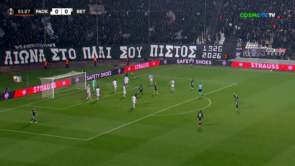 Πολύ καλό και επικίνδυνο το συρτό σουτ του Ντεόσα, φεύγει λίγο δίπλα από το αριστερό κάθετο δοκάρι του Τσιφτσή.