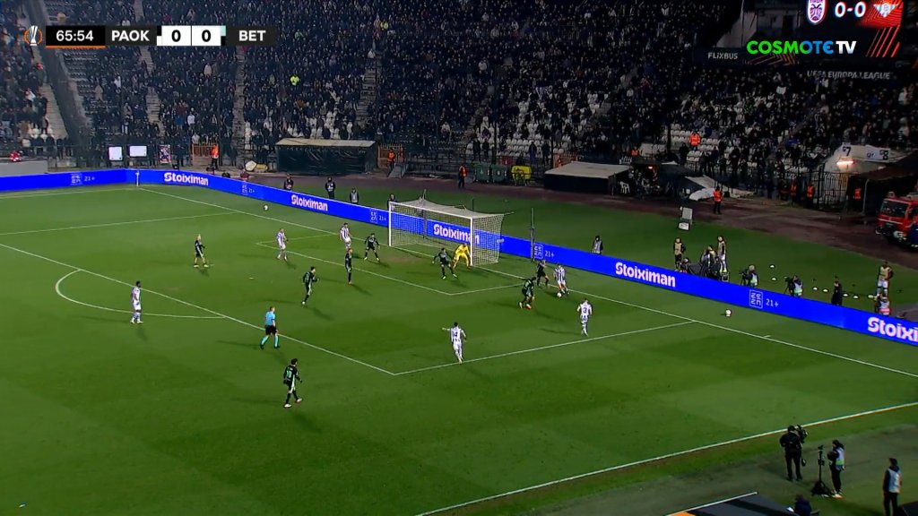 Με τεράστια υπομονή και υπέροχο συνδυαστικό παιχνίδι μέσα στην περιοχή της Μπέτις, ο Κωνσταντέλιας δεν βιάστηκε, είδε τον Μεϊτέ που πέρασε υπέροχα με λόμπα στον Γιακουμάκη, εκείνος γύρισε στον Σέρβο και αυτός μπήκε με την μπάλα στα δίχτυα για το 1-0.
