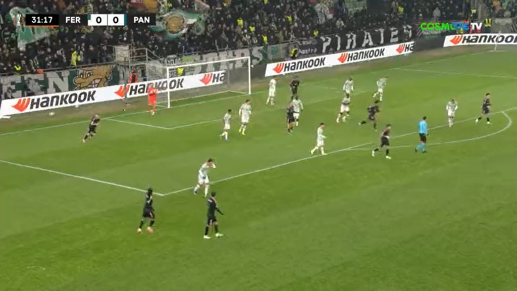Ο Μπακασέτας εκτέλεσε στην περιοχή, ο Σφιντέρσκι την κεφαλιά στο πρώτο δοκάρι, λίγο άουτ η μπάλα.