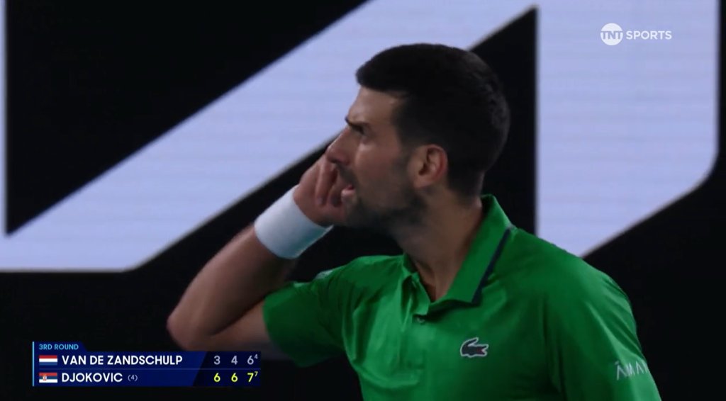 Μετά την άνετη επικράτησή του, στα δυο πρώτα σετ, ο Τζόκοβιτς ζορίστηκε στο τρίτο σετ. Οι δύο τενίστες έκαναν από ένα break και πίσω από τα σερβίς τους ήταν αρκετά σταθεροί. Από τη μεριά του ο Βαν ντε Ζαντσούλπ κατάφερε να σβήσει δύο match point του Τζόκοβιτς στο 12ο game, στέλνοντας το σετ σε tie-break. Εκεί, ο κάτοχος 24 Grand Slam επικράτησε με 7-4 για να κλείσει το σετ με 7-6(4) και να πανηγυρίσει τη νίκη και συνάμα την πρόκριση στην επόμενη φάση.