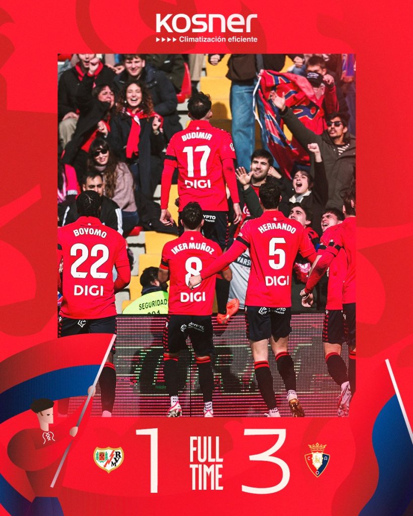 Η Οσασούνα σκαρφάλωσε στην όγδοη θέση, με τη Ράγιο να παραμένει 13η, τρεις βαθμούς πάνω από την επικίνδυνη ζώνη.