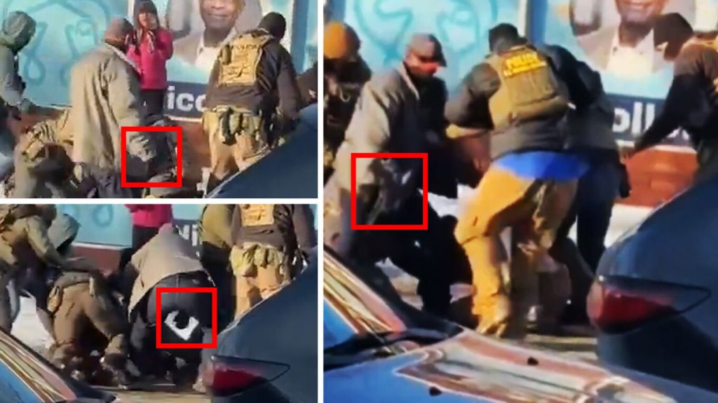 Ωστόσο, στο συγκεκριμένο βίντεο φαίνεται ότι περίπου στο 40ό δευτερόλεπτο, ένας εκ των πρακτόρων, ντυμένος με γκρι μπουφάν, παίρνει το όπλο που, σύμφωνα με διαθέσιμες αναφορές, ο 37χρονος είχε νόμιμη άδεια να φέρει και φεύγει από το σημείο με αυτό.