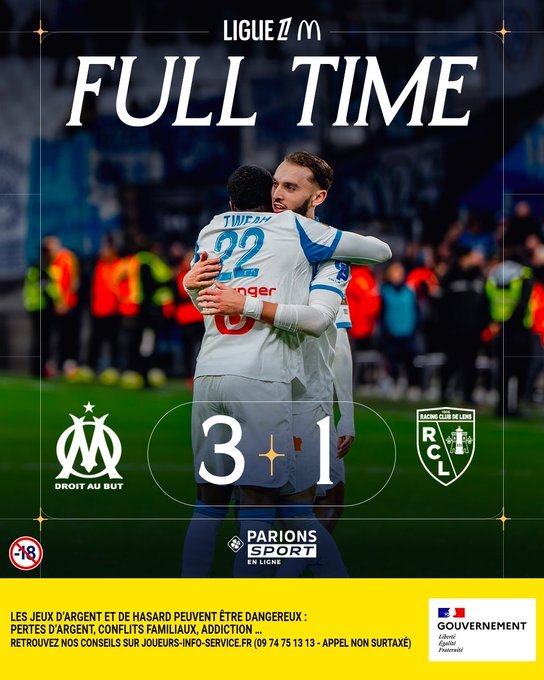 Η Μαρσέιγ ήλεγξε απόλυτα το ματς στο 2ο μέρος και στο 75’ έφτασε και στο 3-0 με το δεύτερο τέρμα του Αμίν Γκουϊρί. Η Λανς το μόνο που κατάφερε, ήταν να μειώσει στο 85' με τον Φοφανά.