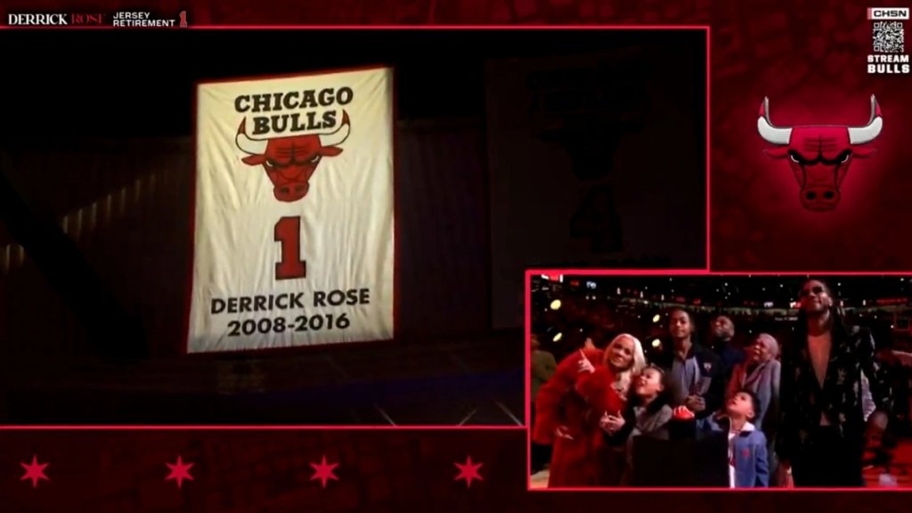 Ο Ντέρικ Ρόουζ μια μεγάλη μορφή των Μπουλς είδε την φανέλα του να αποσύρεται να κοσμεί πλέον τον ουρανό του United Center.  Πλέον το νούμερο 1 θα βρίσκεται για πάντα δίπλα στο 23 του Μάικλ Τζόρνταν, στο 33 του Σκότι Πίπεν, στο 4 του Τζέρι Σλόαν και στο 10 του Μπομπ Λοβ, όπου μαζί με τα μπάνερ των Φιλ Τζάκσον, Τζέρι Κράους και Τζόνι Κερ, θα αποτελούν για πάντα την περηφάνια του Σικάγο και των Μπουλς.