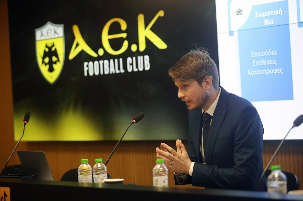 Για το θέμα μίλησαν ο πρόεδρος του Συνδέσμου Παλαιμάχων Ποδοσφαιριστών της ΑΕΚ Στέλιος Μανωλάς, το μέλος του ΔΣ της ΠΑΕ ΑΕΚ Νίκος Παντερμαλής, το μέλος του τεχνικού επιτελείου της ομάδας της ΑΕΚ Ηλίας Κυριακίδης, ο CEO της EAGLE Sports Integrity Service, Παναγιώτης Πανούτσος Ταλκόβσκι και με zoom η Γεωργία Υφαντίδου, καθηγήτρια στο Δημοκρίτειο Πανεπιστήμιο Θράκης.