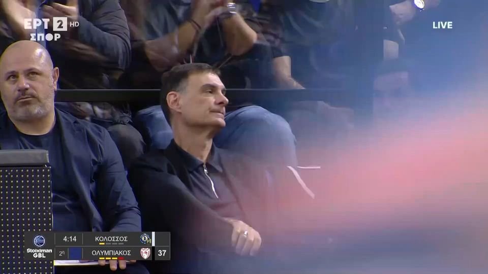 Με 4:22 λεπτά να απομένουν για τη λήξη του ημιχρόνου, ο Κολοσσός Ρόδου είχε επαναφορά από τη πλάγια γραμμή και οι παίκτες του Ολυμπιακού βρέθηκαν σε θέση άμυνας. Οι γηπεδούχοι ευστόχησαν σε σουτ τριών πόντων, για το 36-37, και η έκφραση του Γιώργου Μπαρτζώκα φανέρωνε ότι δεν ήταν καθόλου ικανοποιημένος με τον τρόπο που οι παίκτες του Ολυμπιακού έπαιξαν άμυνα, επιτρέποντας στον Ραντλ να ευστοχήσει.