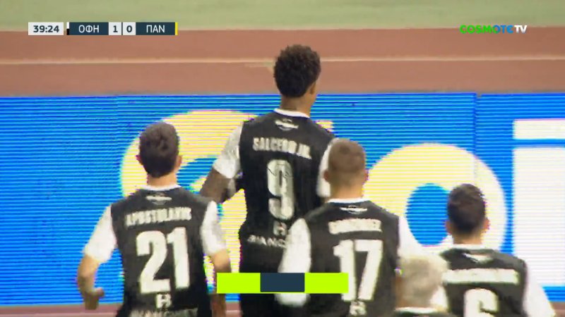 Στο 37’ ο Κουτσρένκο απέκρουσε με τα πόδια το σουτ του Νους. Στο ίδιο λεπτό έγινε γέμισμα από αριστερά και ο Σαλσίδο προσπάθησε να πλασάρει αλλά ο Κόγιτς τον τράβηξε, με τον Κουκούλα να δίνει το πέναλτι. Ο Σαλσίδο εκτέλεσε εύστοχα κι έγραψε το 1-0.