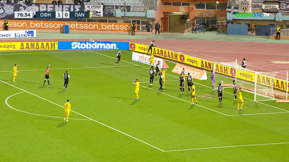Στο 77’ μετά από κόρνερ στην απέναντι περιοχή, ο Μλάντεν έκανε το σουτ από το πέναλτι και ο Χριστογεώργος απέκρουσε εντυπωσιακά.