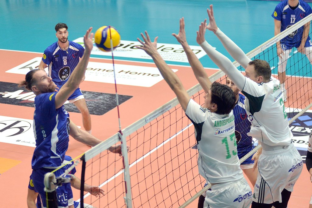 Στο πρώτο σετ ο Μικελούτσι με άσο έκανε το 7-6 και ο Τρούχτσεφ πήρε τη σκυτάλη από τον Βραζιλιάνο για το 11-9. Ο Παναθηναϊκός επέστρεψε με τον Νίλσεν αλλά ο Κωστόπουλος, ο Μικελούτσι με μπλοκ και ο Βαν Ντεν Ντρις με άσο έκαναν το 16-13. Οι Πράσινοι επέστρεψαν ξανά (17-17) και είχαν μια άτυχη στιγμή στο 19-19 μετά τον κερδισμένο πόντο του Τρούχτσεφ, όταν ο Βουλκίδης πάτησε πάνω στο πόδι του Νίλσεν και αποχώρησε με τραυματισμό.