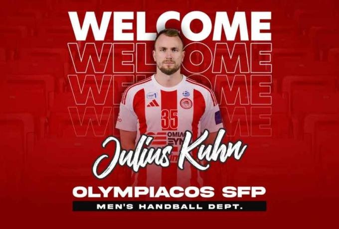 «Ο ΟΛΥΜΠΙΑΚΟΣ Σ.Φ.Π. ανακοινώνει την έναρξη της συνεργασίας του με τον Γιούλιους Κιουν. Ο διεθνής Γερμανός αριστερός ίντερ (1/4/1993, 1,98μ.) υπέγραψε το νέο του συμβόλαιο και εντάσσεται στο ρόστερ της ομάδας χάντμπολ του συλλόγου.