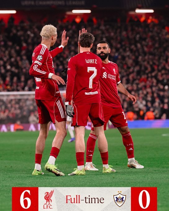 Τη νίκη με 6-0 πανηγύρισε η Λίβερπουλ επί της Γκαραμπάγ και προκρίθηκε από απόψε στους «16» του Champions League. Συνεχίζουν στα playoffs οι Αζέροι.
