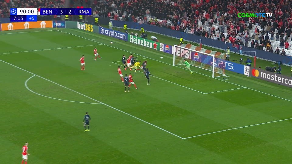 Η Μπενφίκα ήθελε νίκη με δυο γκολ διαφορά, ώστε να προκριθεί στην ενδιάμεση φάση του Champions League. Στο 90'+8', η ομάδα της Λισαβόνας προηγούνταν 3-2 της Ρεάλ Μαδρίτης, είχε κερδίσει φάουλ και ο Ζοζέ Μουρίνιο έδωσε εντολή στον τερματοφύλακά του να μπει και εκείνος στη μεγάλη περιοχή των φιλοξενούμενων. Ο Ανατόλι Τρούμπιν έπιασε τη κεφαλιά, σκόραρε και έστειλε την Μπενφίκα στην ενδιάμεση φάση και τους φίλους της στον έβδομο ουρανό.