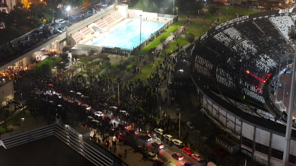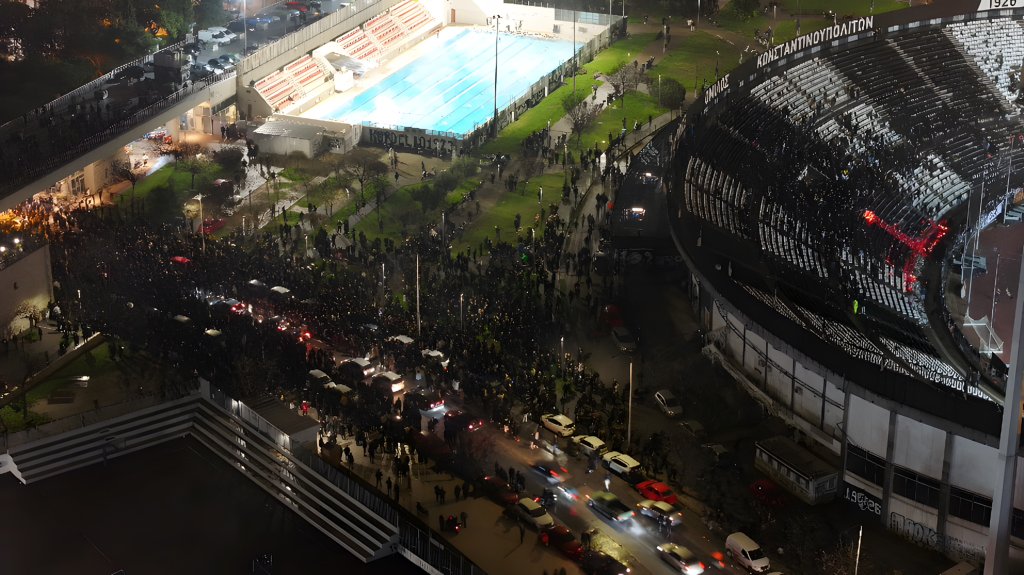 Το κλίμα στην Τούμπα ήταν συγκινητικό όταν οι φίλοι του ΠΑΟΚ τραγούδησαν σύνθημα για τους επτά αδικοχαμένους φιλάθλους του ΠΑΟΚ στη Ρουμανία, αλλά και εκείνους στα Τέμπη το 1999.
