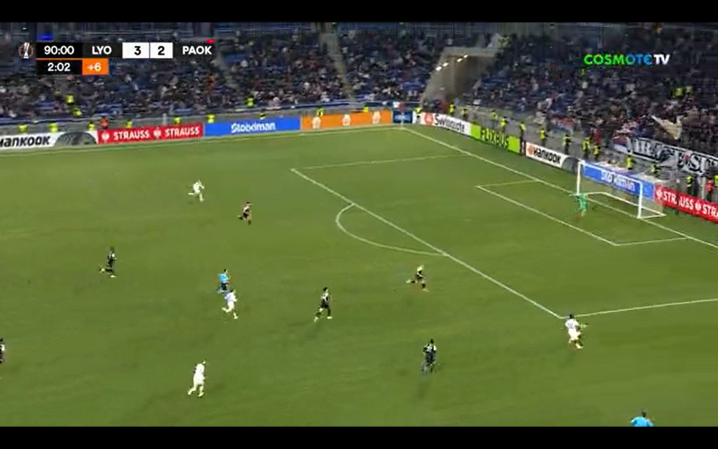 Ο Ροντρίγκεθ κάνει το 4-2 για τη Λιόν και σφραγίζει τη νίκη για τους γηπεδούχους.