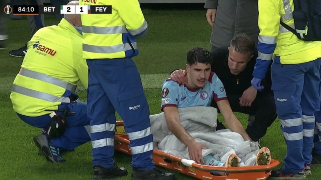 Ο 19χρονος άσος της Φέγενορντ προσγειώθηκε στο έδαφος άτσαλα σε μία διεκδίκηση της μπάλας κι αμέσως οι γιατροί της ομάδας μπήκαν στον αγωνιστικό χώρο για να τον μεταφέρουν εκτός με φορείο.