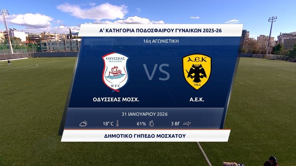 Η γυναικεία ομάδα ποδοσφαίρου της ΑΕΚ έμεινε στο 1-1 με τον Οδυσσέα στο Μοσχάτο, στο πλαίσιο της 16ης αγωνιστικής του Πρωταθλήματος της Α’ Εθνικής Κατηγορίας, σε ένα ματς που αμαυρώθηκε από την σοκαριστική επίθεση οπαδών του Ολυμπιακού στους οπαδούς της Ένωσης.