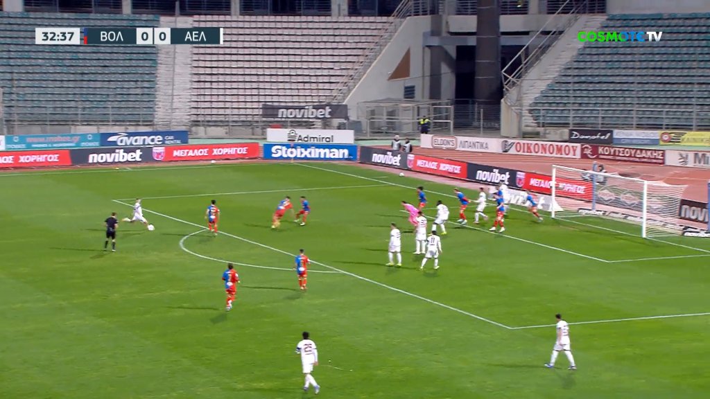 Πέναλτι κέρδισε η ΑΕΛ και κόκκινη στον Κάργα στο 35', μετά τον έλεγχο του VAR-Την εκτέλεση ανέλαβε ο Τούπτα, αλλά έδιωξε σε κόρνερ ο Σιαμπάνης.