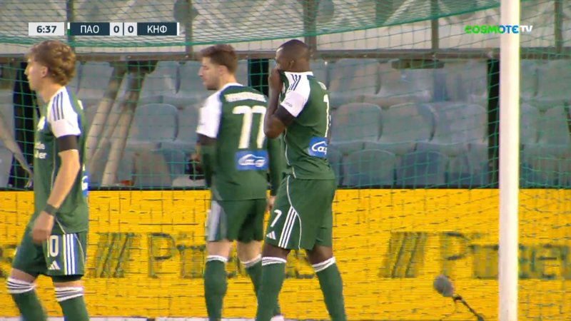 Στο 7’ μετά από κόρνερ και άστοχη έξοδο του Λαφόν, ο Ποκόρνι πήρε την κεφαλιά και ο Τεττέη έβγαλε πάνω στη γραμμή.