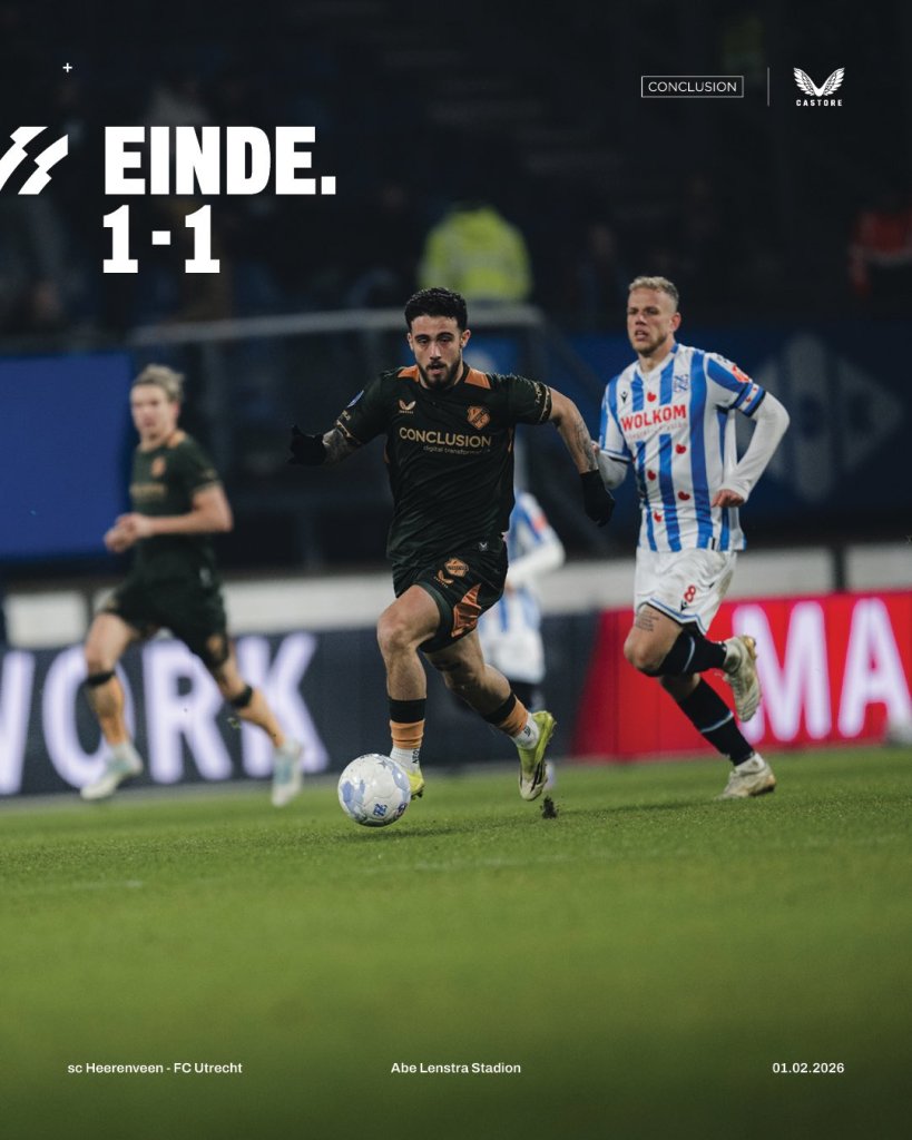Οκτώ διαδοχικά ματς πρωταθλήματος χωρίς νίκη συμπλήρωσε η Ουτρέχτη, μετά και το 1-1 στην έδρα της Χέρενφεν. Στο 24ο λεπτό, η Χέρενφεν άνοιξε το σκορ, με τον Δανό Γιάκομπ Τρένσκοφ να πετυχαίνει το έβδομο του γκολ στην εφετινή Eredivisie. Η Ουτρέχτη έφτασε στην ισοφάριση, μετά από συνδυασμό των δυο πιο πρόσφατων μεταγραφικών αποκτημάτων της. Στο 54', ο Σουηδός ακραίος φορ Γέσπερ Κάρλσον έκανε το 1-1 με κεφαλιά, από ασίστ του Ισπανού ακραίου επιθετικού Άνχελ Αλαρκόν. Πέντε λεπτά μετά, ο διαιτητής έδωσε πέναλτι υπέρ της Χέρενφεν, όμως, κλήθηκε από τον VARίστα, να δει τη φάση σε βίντεο, όπως και έγινε, με τον ρέφερι να παίρνει πίσω την απόφασή του. Οι γηπεδούχοι πίεσαν για το γκολ της νίκης και, στο 90'+3', η Χέρενφεν είχε δοκάρι με τον Λούκα Όγιεν. Η Χέρενφεν παραμένει στη 10η θέση και στοχεύει στα playoffs Ευρώπης, με την Ουτρέχτη να βάζει τέλος στο σερί έξι ηττών, σε όλες τις διοργανώσεις, και να παραμένει 11η.