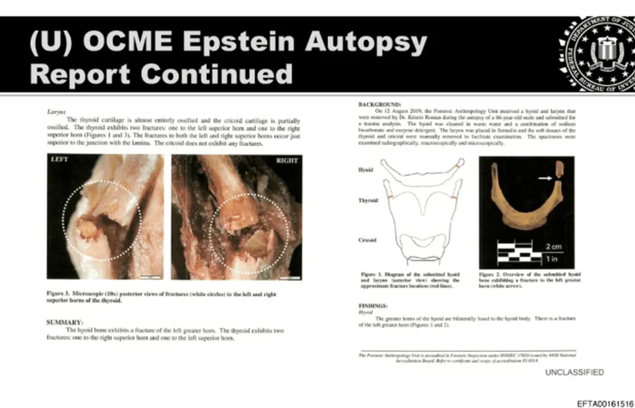 Φωτογραφίες του θυρεοειδούς χόνδρου του Επστάιν που σχεδόν έσπασε / Department of Justice