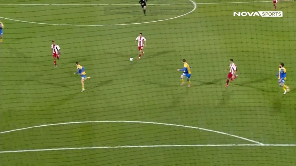 Ο Έσε μοίρασε δεξιά στον Κοστίνια, που του γύρισε ξανά, με τον Αργεντινό να αστοχεί με πλασέ λίγο πίσω από το πέναλτι.
