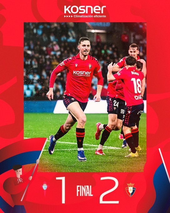 Τεράστιο διπλό με σκορ 2-1 πανηγύρισε η Οσασούνα στην έδρα της Θέλτα και την πλησίασε στους τέσσερις βαθμούς. Τρίτο σερί ματς δίχως τρίποντο για τους γηπεδούχους, που βλέπουν την Ευρώπη να απομακρύνεται.