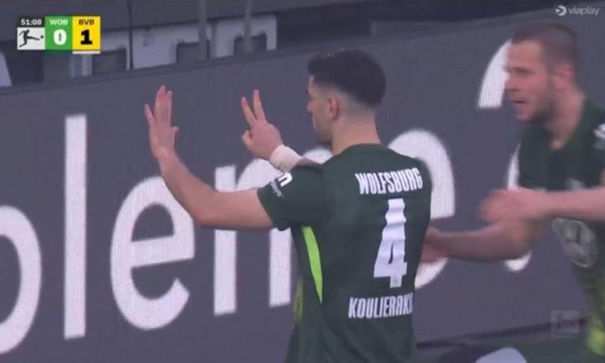 Στη Volkswagen Arena, ο Κωνσταντίνος Κουλιεράκης της Βόλφσμπουργκ ισοφάρισε, 1-1 στο 52ο λεπτό, απέναντι στη Μπορούσια Ντόρτμουντ, με δυνατή κεφαλιά.