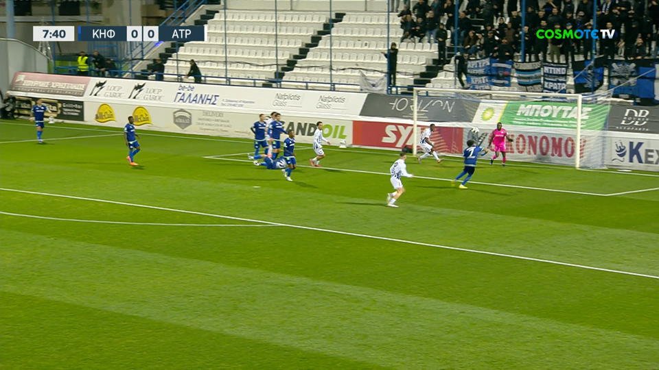 Στο 8ο λεπτό μετά από γύρισμα από αριστερά, ο Μπάκου δεν βρήκε την μπάλα μέσα στη μικρή περιοχή.