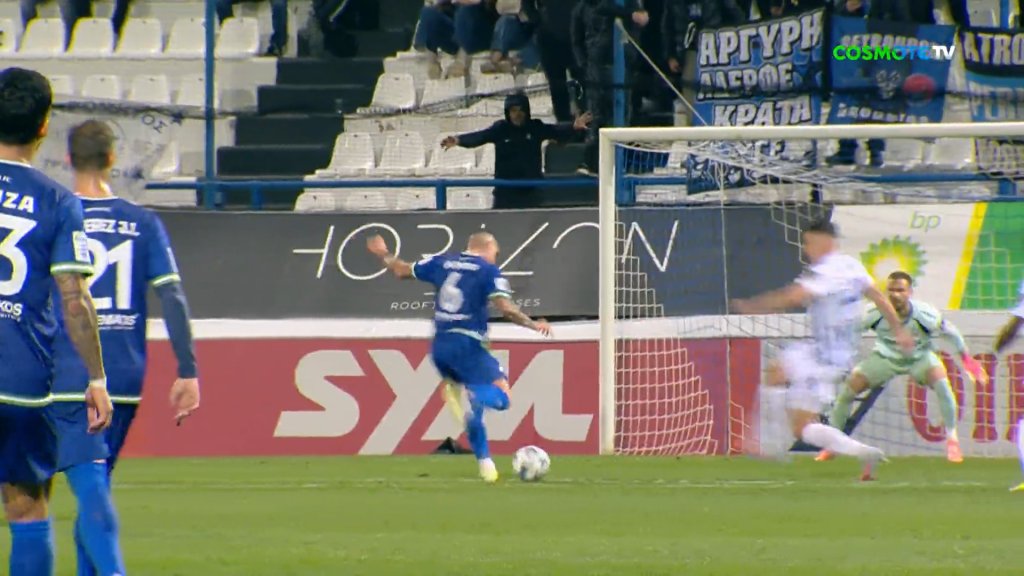Μεγάλη ευκαιρία για την Κηφισιά! Ο Νούνελι έκανε ωραία ενέργεια και είδε τον Πόμπο, ο οποίος έφερε μπροστά του την μπάλα και εκτέλεσε, η μπάλα κόντραρε και έφυγε κόρνερ.