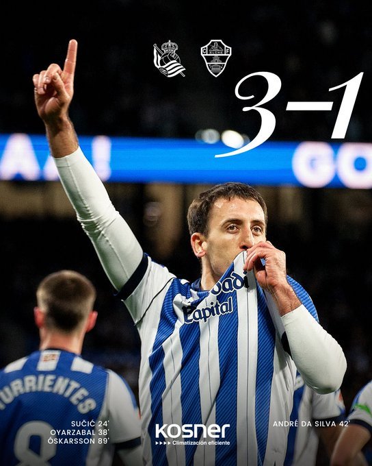Η Ρεάλ Σοσιεδάδ κέρδισε άνετα με 3-1 την Έλτσε, παρέμεινε αήττητη μέσα στο 2026 και βρέθηκε στο -3 από την έκτη θέση, που δίνει ευρωπαϊκό εισιτήριο.