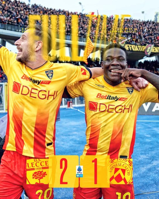 Ανάσα για τη Λέτσε, που κέρδισε με 2-1 την Ουντινέζε, ήρε το πρώτη της τρίποντο από τις 12 Δεκεμβρίου και βρέθηκε στο +3 από τις επικίνδυνες θέσεις.