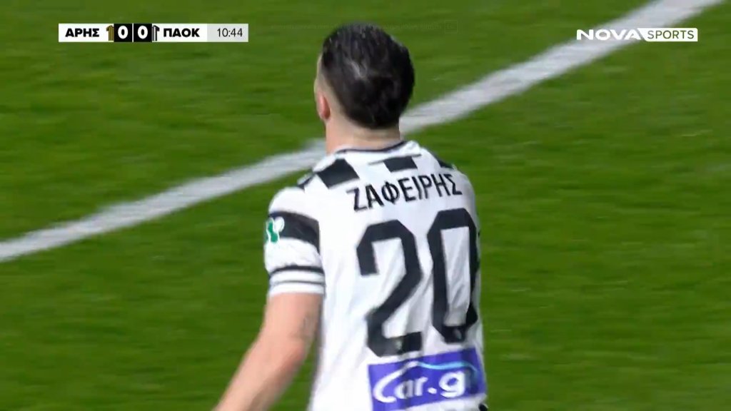 Έκλεψε ψηλά ο Ζαφείρης, πήρε ο Γιακουμάκης, αυτός έπαιξε με τη μια ξανά για Ζαφείρη που έχασε τον έλεγχο, έκανε ένα πλασέ απέναντι στον τερματοφύλακα του Άρη, αλλά δεν ήταν καλό. Μπλόκαρε ο Αθανασιάδης.