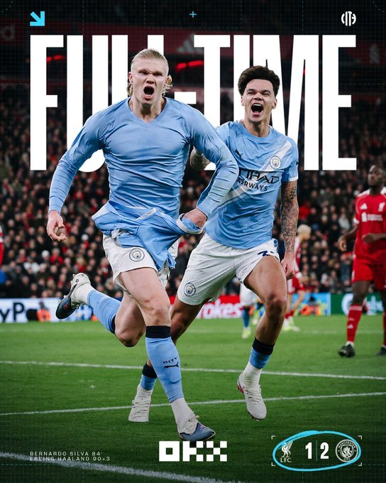 Η Σίτι δεν το έβαλε κάτω και στο 84’ ο Χάαλαντ πήρε την κεφαλιά και ο Σίλβα πετάχτηκε και με προβολή από κοντά ισοφάρισε σε 1-1. Και μάλιστα στο 90+1’ ο Άλισον έκανε ένα χαζό πέναλτι στον Νούνες και ο Χάαλαντ έγραψε το 1-2 από τα 11 μέτρα. Μάλιστα στο 90+7’ ο Αΐτ Νουρί έφυγε από αριστερά, πάτησε περιοχή κι έκανε το σουτ, με τον Άλισον να σώζει ενώ στο 90+8’ ο Ντοναρούμα έσωσε εντυπωσιακά μετά από σουτ του Μακ Άλιστερ.