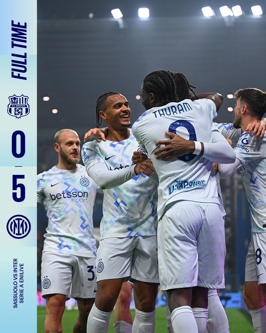 Δεν κάνει στάση το τρένο της Ίντερ, η οποία πέρασε με 5-0 από την έδρα της Σασουόλο και βρέθηκε στο +8 από τη Μίλαν (ένα ματς λιγότερο) και στο +9 από τη Νάπολι.