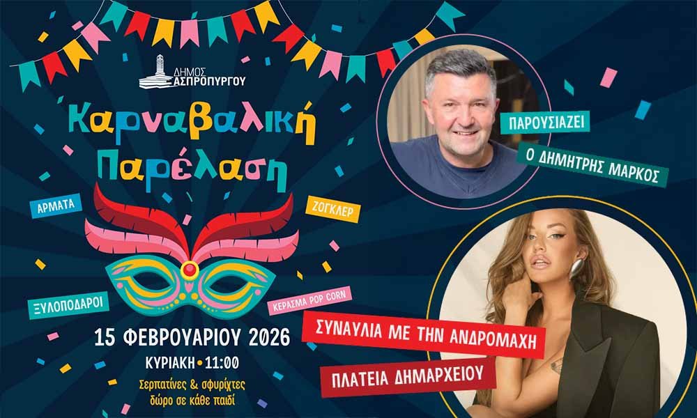 Η Αποκριά είναι χαρά, είναι συμμετοχή, είναι η ευκαιρία να ξαναβρεθούμε όλοι μαζί, μικροί και μεγάλοι, και να γιορτάσουμε με κέφι, χαμόγελο και αισιοδοξία.