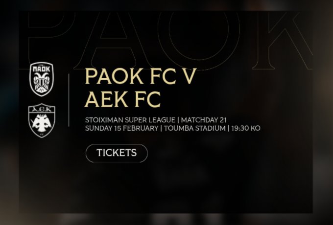 Η ΠΑΕ ΠΑΟΚ ανακοινώνει ότι αύριο Τετάρτη (11.02) στις 15:00 θα ξεκινήσει η ηλεκτρονική διάθεση των εισιτηρίων του αγώνα ΠΑΟΚ-ΑΕΚ, για την 21η αγωνιστική του πρωταθλήματος της Stoiximan Super League 2025-26, που θα διεξαχθεί την Κυριακή (15.02) στις 19:30 στο γήπεδο της Τούμπας.