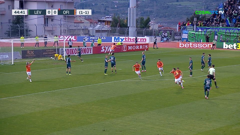 Στο 45’ ο Γκονθάλεθ εκτέλεσε φάουλ από δεξιά και ο Λαμπρόπουλος με κεφαλιά σχεδόν από τη γραμμή της περιοχής έκανε το 0-1, με τον Λοντίγκιν να φέρει ευθύνη.