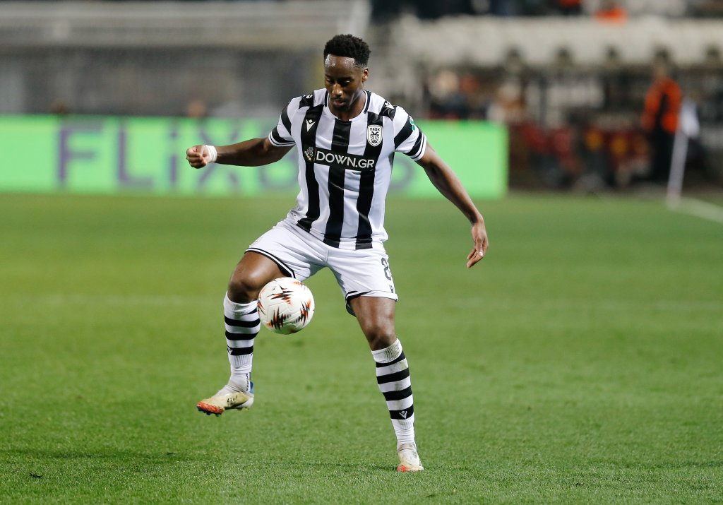 Πρώτη μεγάλη ευκαιρία για τον ΠΑΟΚ με μονοκόμματο σουτ του Μεϊτέ, πολύ λίγο άουτ.