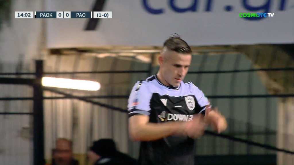Απειλητική στιγμή για την άμυνα του Παναθηναϊκού, με σέντρα που έγινε, ο Τουμπά έκανε.... τσαφ, αλλά πρόλαβε να διώξει κόρνερ πριν ο Πέλκας απειλήσει.