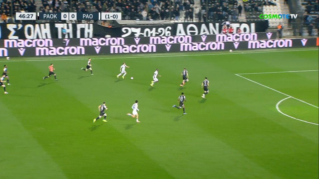 Ο Αντίνο κλέβει την μπάλα και την κουβαλά, φτάνει σε καλό σημείο για σουτ, το έκανε, αλλά ήταν άστοχο.