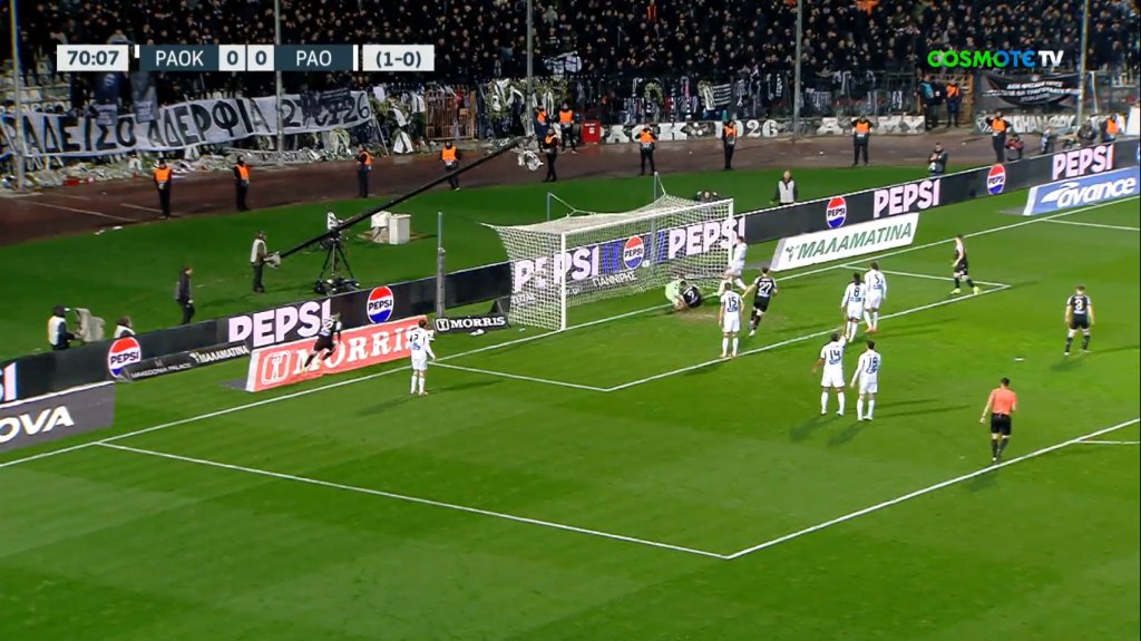 Ο Χατσίδης έκανε το γύρισμα από αριστερά μέσα στην περιοχή και ο φορ του ΠΑΟΚ έσπρωξε την μπάλα στα δίχτυα, γράφοντας το 1-0