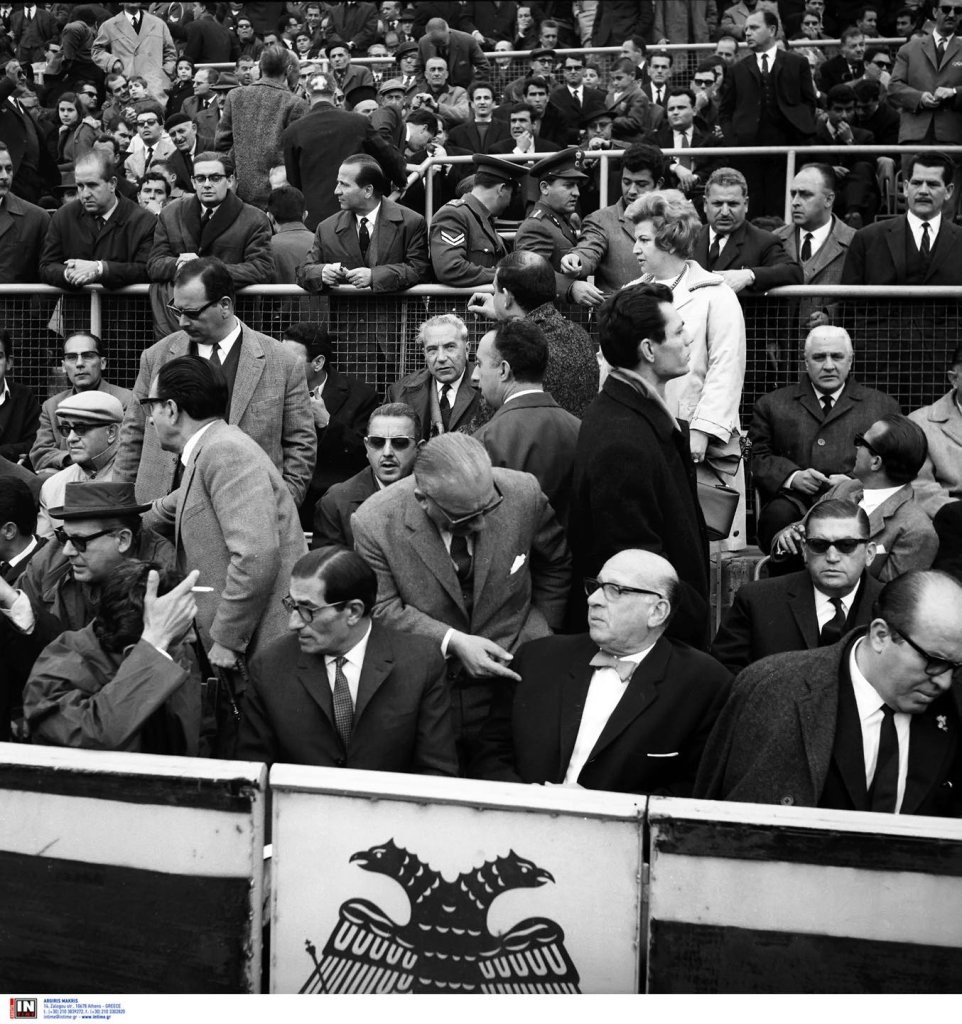 Στην πρώτη σειρά των επισήμων στο Στάδιο της Νέας Φιλαδέλφειας, μαζί με τους τ. Προέδρους Ιωάννη Χρυσαφίδη και Σπύρο Σκούρα, τη δεκαετία του ‘60.