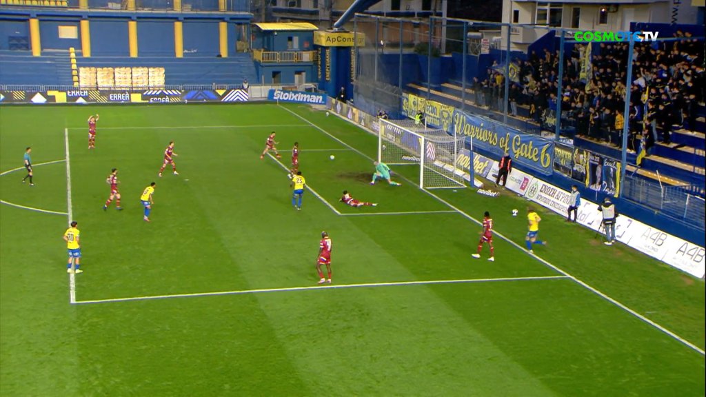Σέντρα του Γκράναθ από τα δεξιά, με τομ Μπάτζι να κάνει την κεφαλιά και την μπάλα να κοντράρει πάνω στον Αλάγκμπε και να του στρώνεται, αλλά από τη μικρή περιοχή δεν μπόρεσε να βρει εστία.