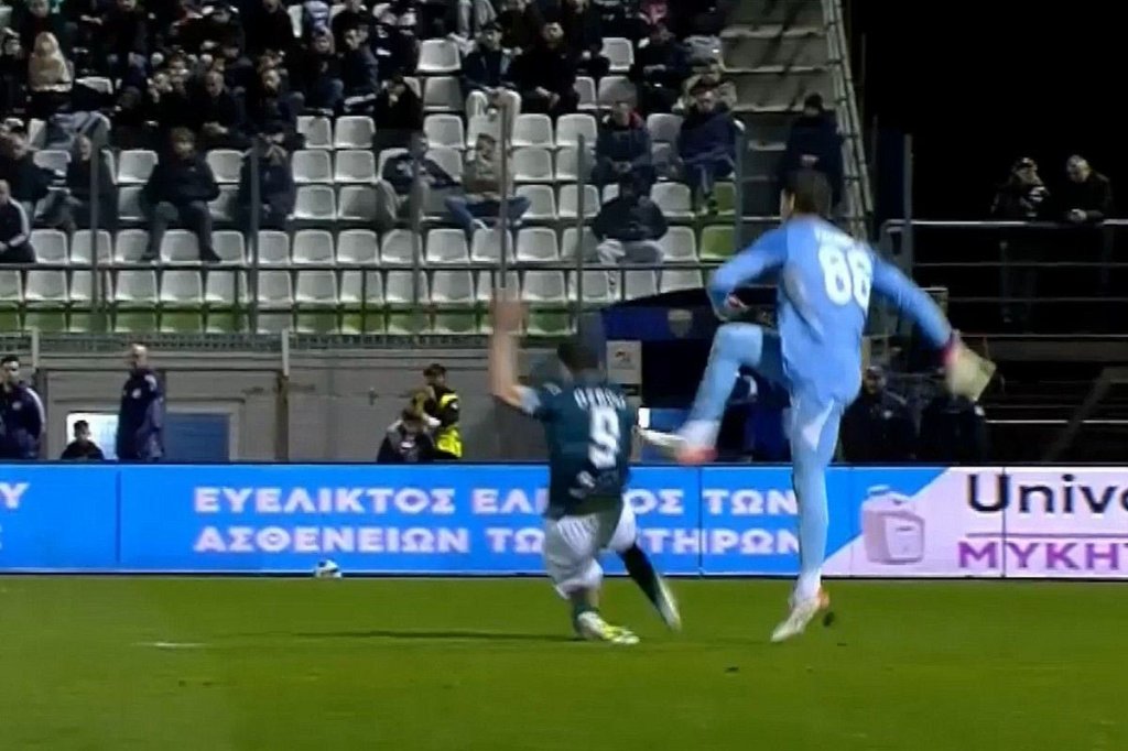 Αρχικά, κιτρίνισε τον Όζμπολτ για διαμαρτυρία, σε ανάποδο σφύριγμα του Φωτιά, και, αμέσως μετά, ο παίκτης του Λεβαδειακού είδε δεύτερη κίτρινη κάρτα για προβολή στον Τζολάκη. Ωστόσο, σε κανένα ριπλέι δεν φαίνεται Όζμπολτ να βρίσκει τον Τζολάκη.