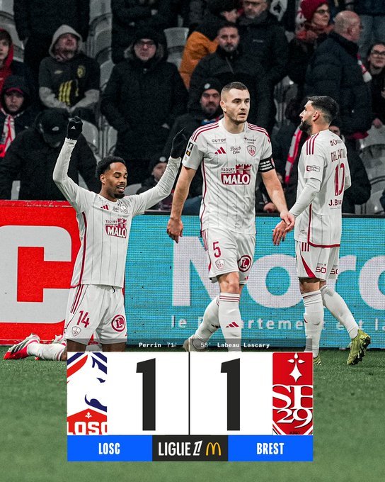 Καταρρέει η Λιλ. Η ομάδα του Μπρούνο Ζενεσιό έμεινε στο 1-1 με την Μπρεστ, αγνοεί τη νίκη από τα μέσα Δεκεμβρίου και έχασε κι άλλο έδαφος στη μάχη της τετράδας.