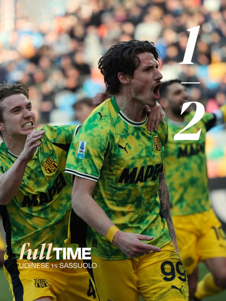 Με δυο γκολ, σε διάστημα δυο λεπτών, στην επανάληψη, η Σασουόλο έφυγε νικήτρια από το Ούντινε, 2-1 την Ουντινέζε, πετυχαίνοντας δεύτερη σερί νίκη μακριά από την έδρα της.