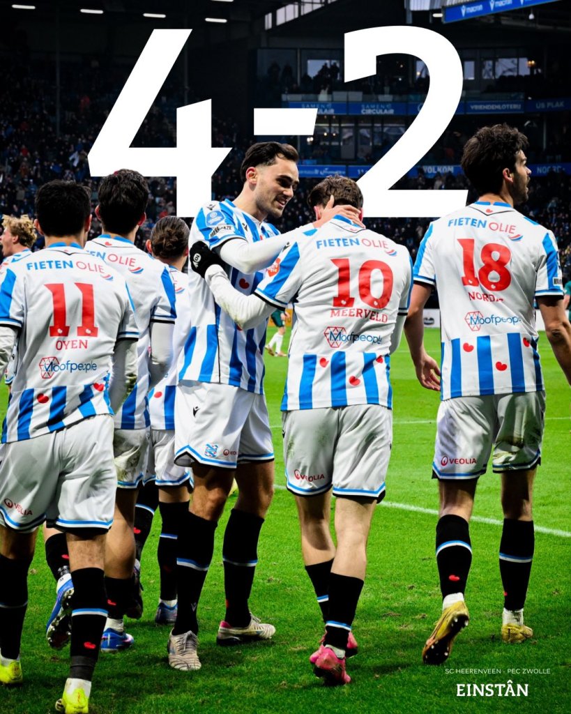 Μπροστά στο κοινό της, η Χέρενφεν βρέθηκε να χάνει 2-0 από τη Τσβόλε, πριν το 20λεπτο, αλλά, γύρισε το ματς, νίκησε 4-2 και φουλάρει για τα playoffs Ευρώπης. Με γκολ (13') και ασίστ (16' γκολ ο Γκουϊγέρ)) του Γιουνές Ναμλί, η Τσβόλε πήρε προβάδισμα δυο τερμάτων, πολύ νωρίς, αιφνιδιάζοντας τους γηπεδούχους. Στο μισάωρο, η Χέρενφεν μείωσε με ωραίο τελείωμα του Μαξένς Ριβέρα και, στην επανάληψη έφτασε στην ολική ανατροπή, σε διάστημα έντεκα λεπτών. Ο, δανεικός από τη Λούτον, Λάσε Νορντάς ισοφάρισε στο 52ο λεπτό και, στο 63', ο Ρίνγκο Μέερβελντ έκανε το 3-2 με μακρινό σουτ. Στις καθυστερήσεις, ο Εσέρ Γκουρμπούζ κλείδωσε τη νίκη για τη Χέρενφεν. Στο +7 από την επικίνδυνη ζώνη η Τσβόλε