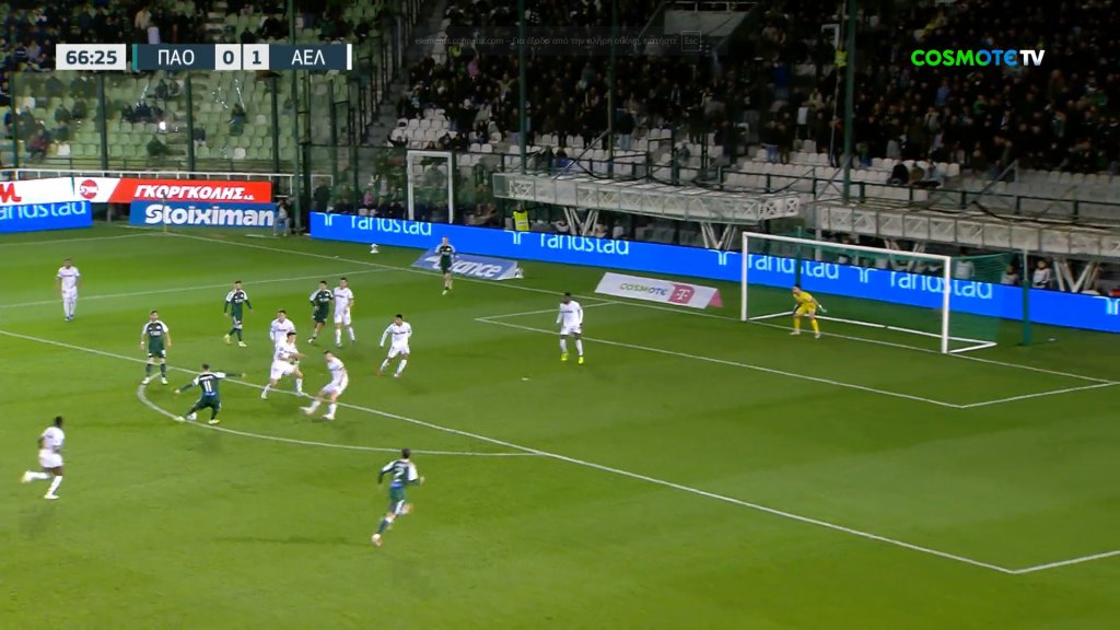 Δυνατό σουτ του Μπακασέτα με το αριστερό στο 67 γαι το 1-1